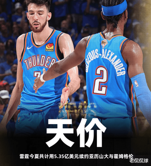 这还没完,今天雷霆又与切特-霍姆格伦签下5年2.5亿美金的顶薪,合同从2026-27赛季开始逐年递增,第五年高达5445万美元。再加上杰伦-威廉姆斯基本上已经提前锁定5年2.75亿美元的顶薪报价合同,如果最终达成仅仅这三笔合同叠加总金额已经超过8亿美金,在2027年将占球队工资帽的90%空间,有点离谱了。